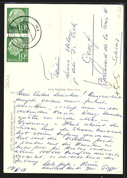 AK Köln /Rhein, Hotel am Augustiner Platz, Hohestr. 30