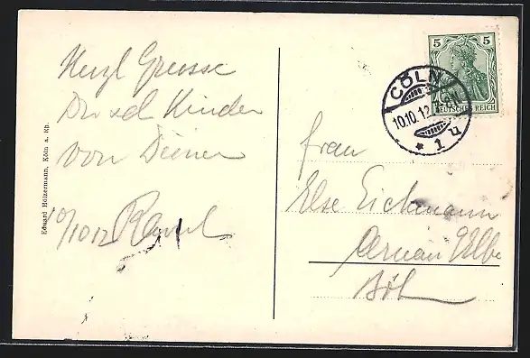 alte Ansichtskarte, gelaufen 1912, Eckknick li. oben, guter Zustand
