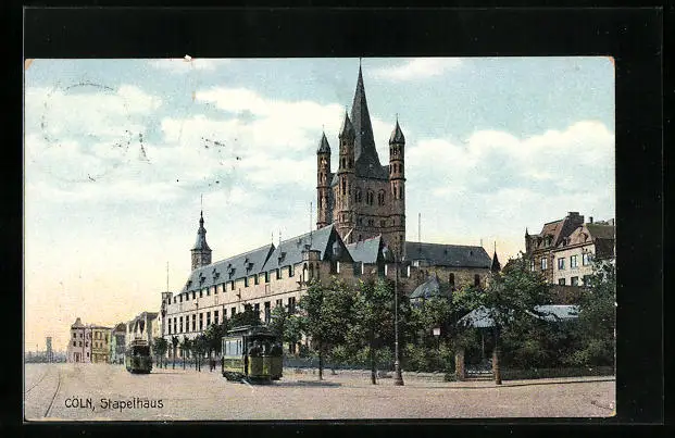 AK Köln, Strassenbahn vor Stapelhaus
