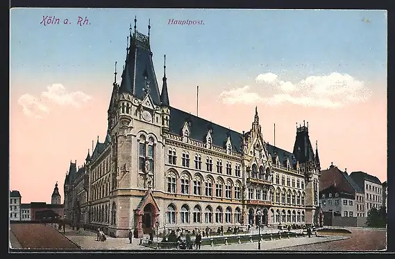 AK Köln, Strassenpartie mit Hauptpost