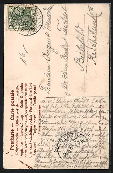 alte Ansichtskarte, gelaufen 1905, guter Zustand