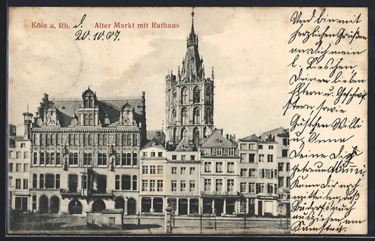 AK Köln a. Rh., Alter Markt mit Geschäften und Rathaus