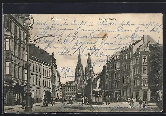 AK Köln a. Rh., Gereonstrasse mit Gschäften, Kirche und Strassenbahn