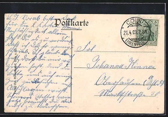alte Ansichtskarte, gelaufen 1909, guter Zustand