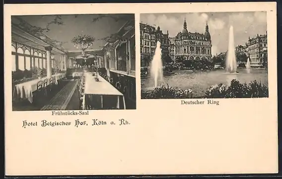 AK Köln a. Rh., Hotel Belgischer Hof, Inneres Frühstücks-Saal, Deutscher Ring