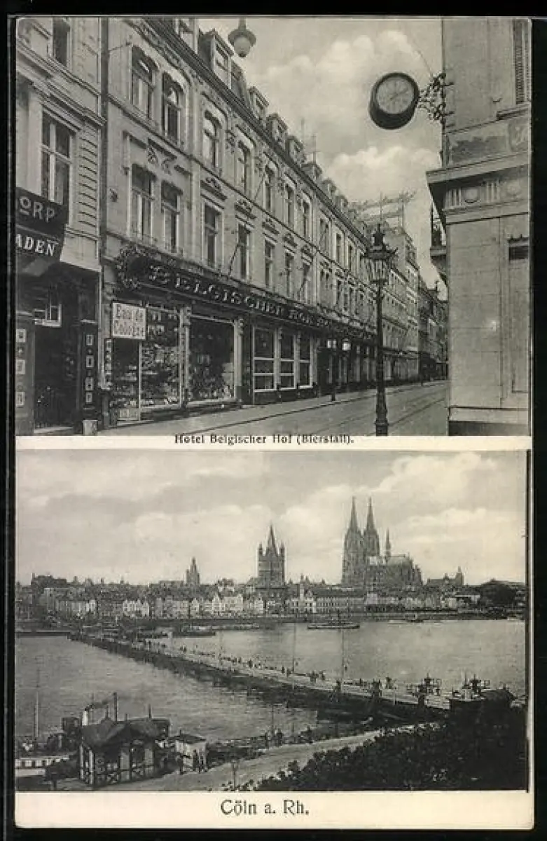 AK Köln a. Rh., Hotel Belgischer Hof, Uferpartie mit Kirche