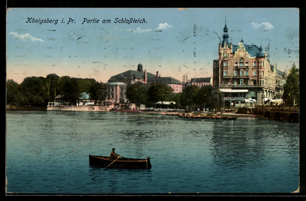 AK Königsberg, auf dem Schlossteich, ein kleines Ruderboot
