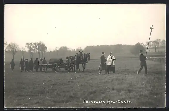 AK Königsbrück /Sachsen, Französische Kriegsgefangene bei einem Trauerzug