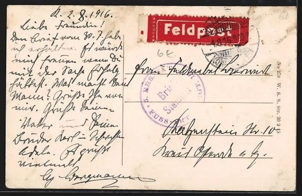 alte Ansichtskarte, gelaufen 1916, Eckknicke li., guter Zustand