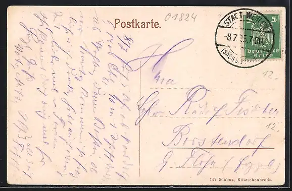 alte Ansichtskarte, gelaufen 1925, Eckknick re. unten, guter Zustand
