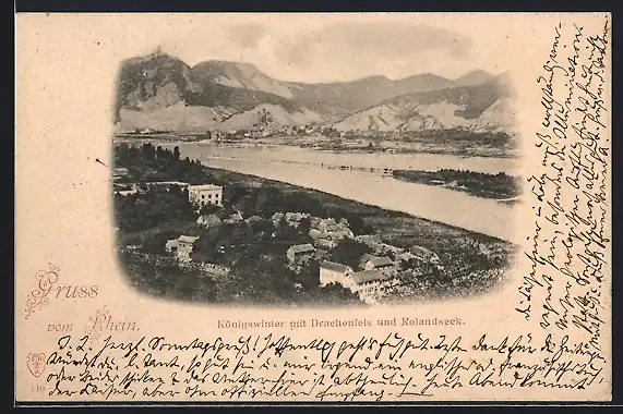 AK Königswinter /Rhein, Teilansicht mit Drachenfels und Rolandseck