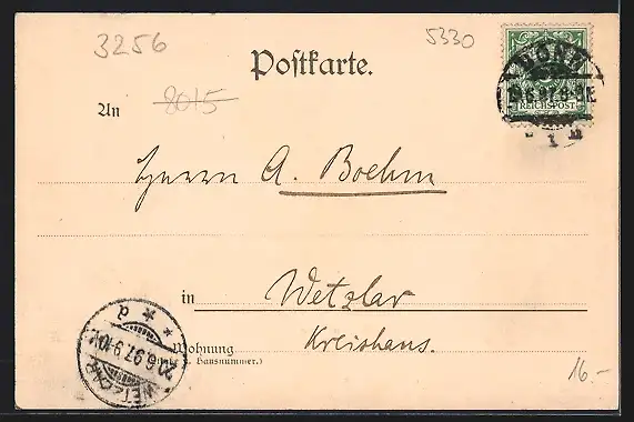 alte Ansichtskarte, gelaufen 1897, guter Zustand