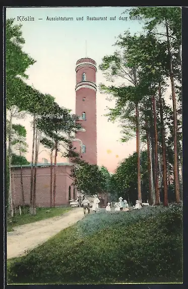 AK Köslin, Aussichtsturm und Restaurant auf dem Gollen