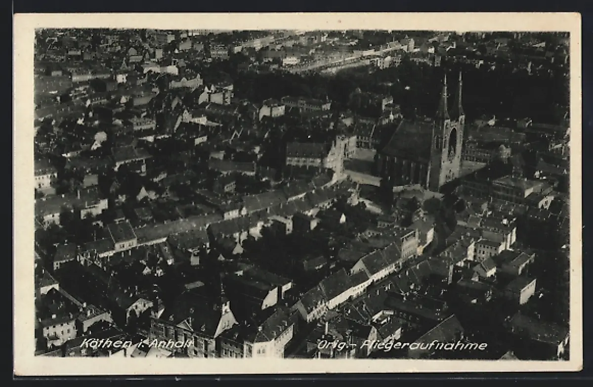 AK Köthen i. Anhalt, Teilansicht mit Kirche, Fliegeraufnahme