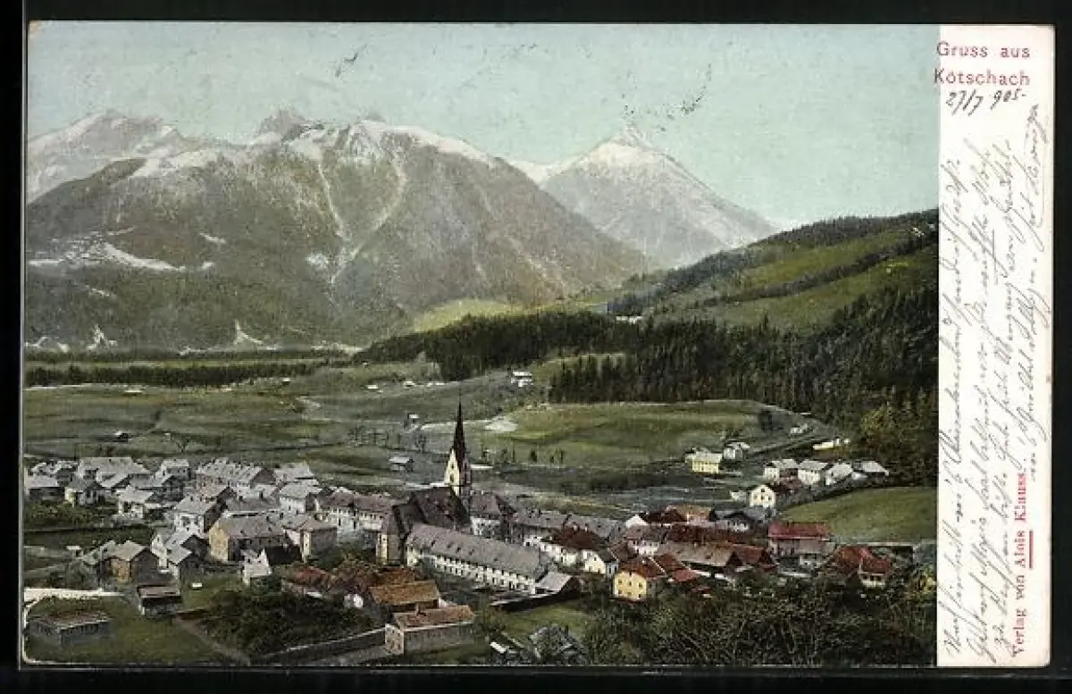 AK Kötschach, Gesamtansicht aus der Vogelschau