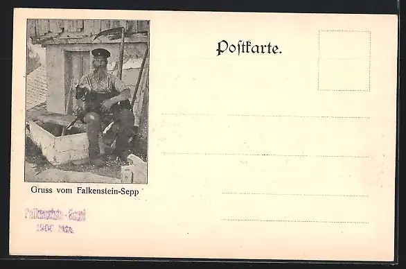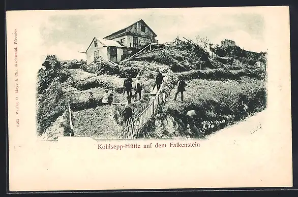 AK Kohlsepp-Hütte /Falkenstein, Wanderer vor der Berghütte, Falkenstein-Sepp mit Ziege
