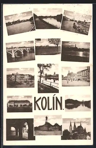 AK Kolin, Wasserturm, Brücke, Gebäudeansichten