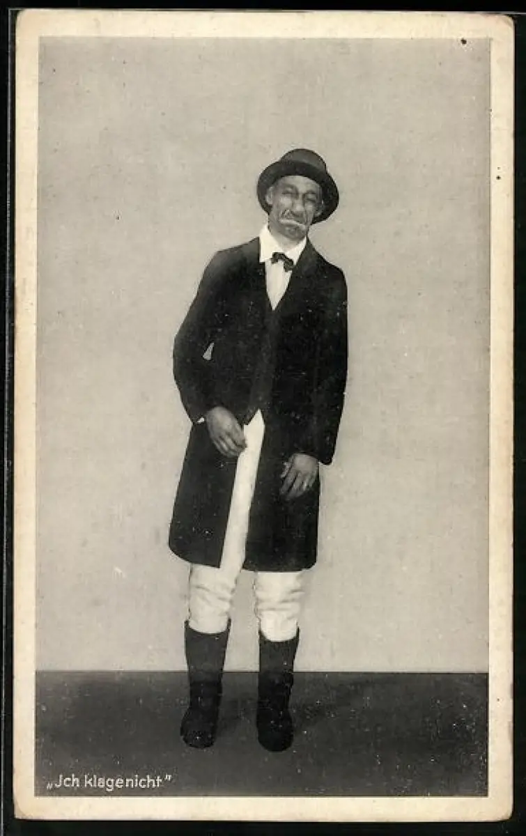 AK Komiker im Anzug zieht eine Fratze, Ich klagenicht