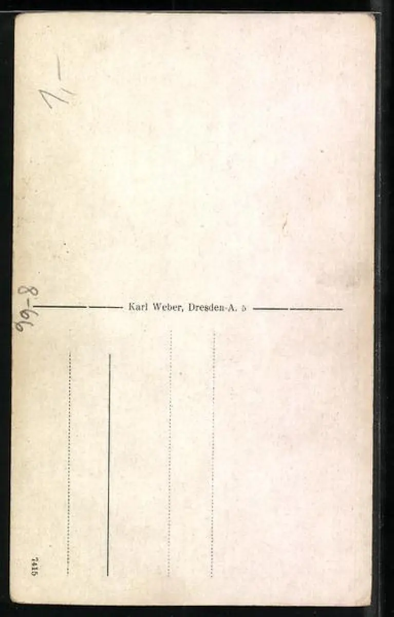 Personenbezogene Daten auf der Rückseite der Karte wurden durch blauen Textmarker unkenntlich gemacht. Die blauen Stellen sind auf die Vorderseite durchgeweicht und wirken sich negativ auf das Postkartenfoto aus