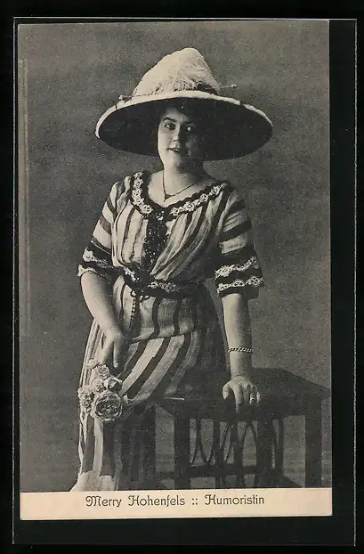 AK Komikerin Merry Hohenfels, Portrait mit Tellerhut
