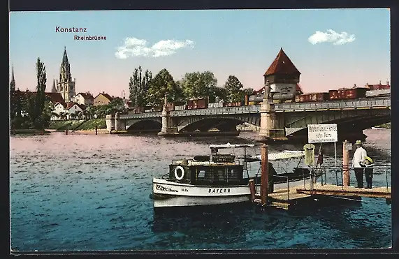 AK Konstanz, Bodensee-Dampfer Bayern bei der Rheinbrücke