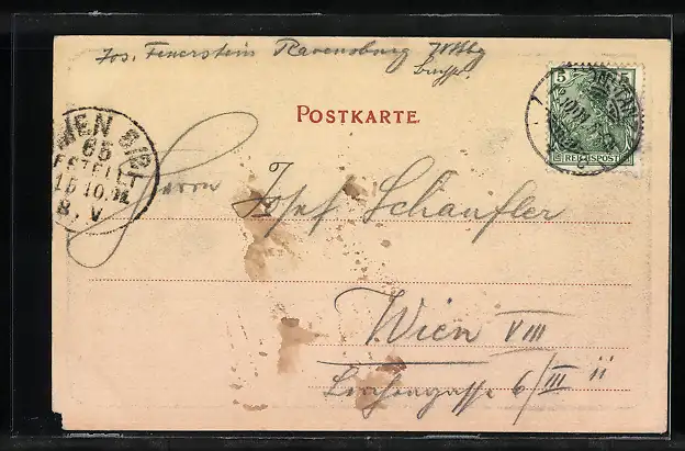 gelaufen 1901, kleiner Eckschaden re. unten, guter Zustand