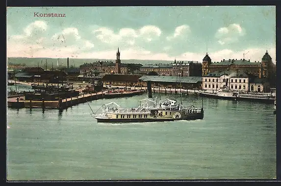 AK Konstanz, Uferpartie mit Dampfer
