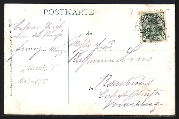 gelaufen 1906, Eckknick re. oben, guter Zustand