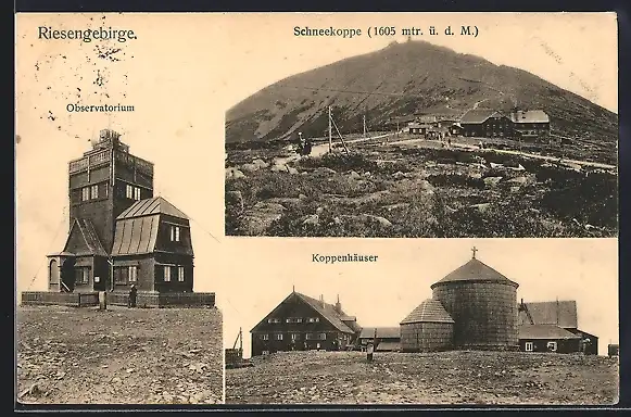 AK Koppenhäuser /Riesengebirge, Ansicht auf der Schneekoppe mit Observatorium