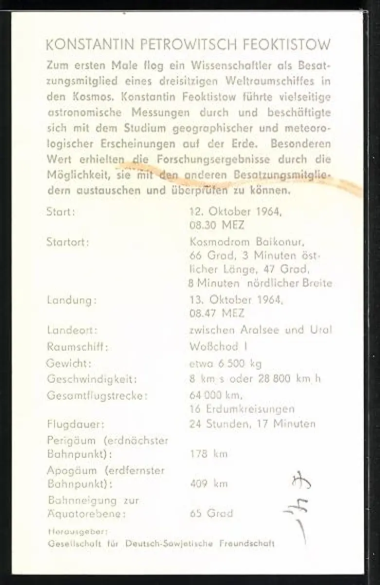 AK Kosmonaut Konstantin Petrowitsch Feoktistow in Anzug mit Krawatte