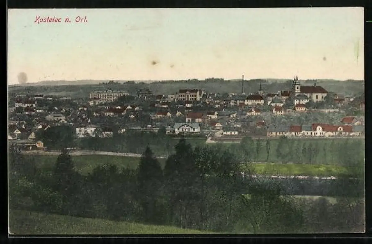 AK Kostelec n. Orl., Totalansicht aus der Vogelschau