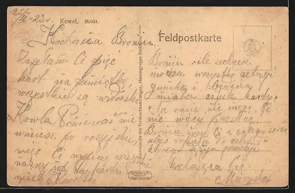 Personenbezogene Daten auf der Rückseite der Karte wurden durch blauen Textmarker unkenntlich gemacht. Die blauen Stellen sind auf die Vorderseite durchgeweicht und wirken sich negativ auf das Postkartenfoto aus