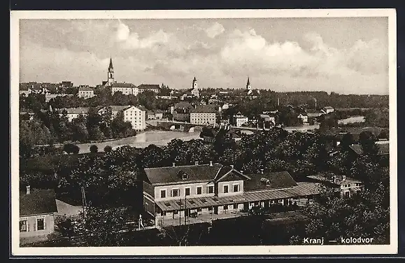 AK Kranj, kolodvor, Teilansicht mit Bahnhof