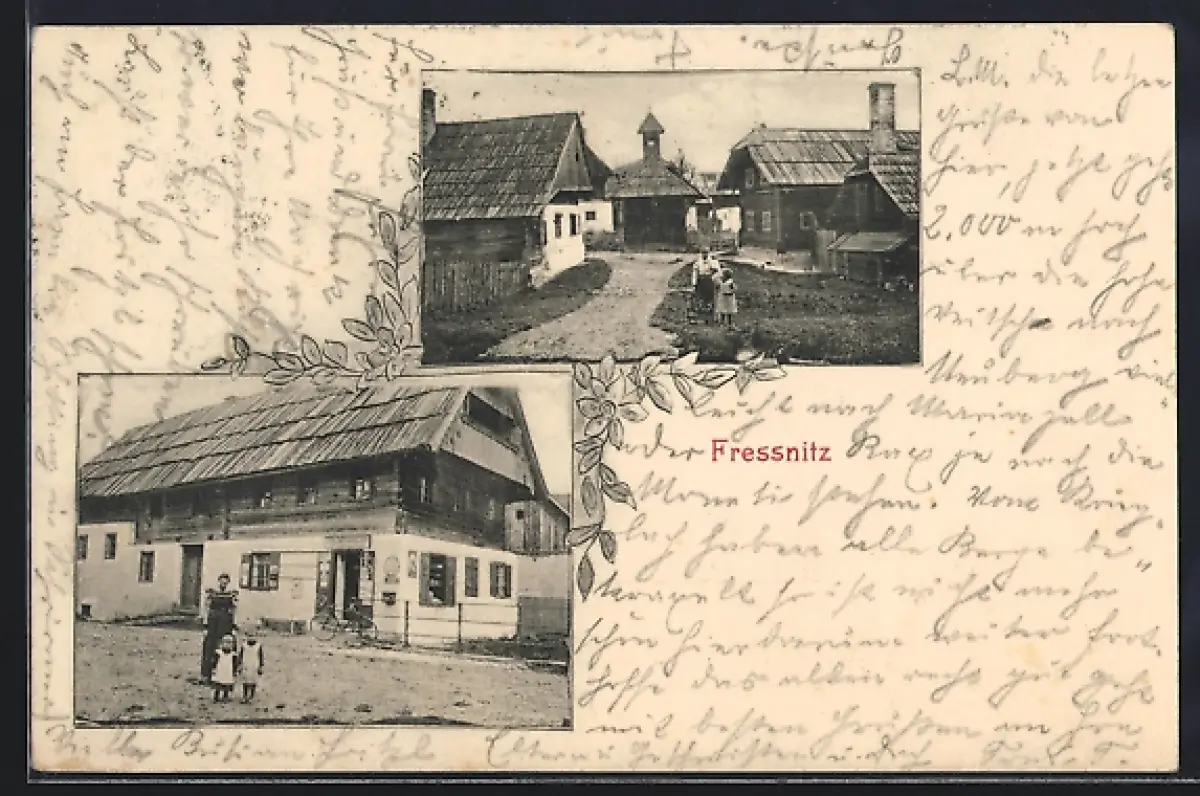AK Krieglach /Stmk., Fressnitz, Geschäft von Eustach Krätzer und Ortspartie