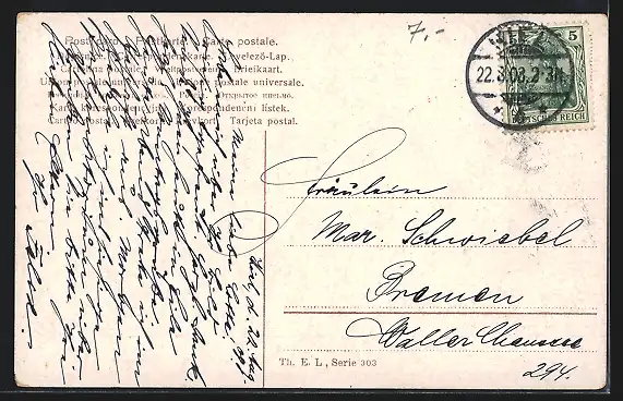 alte Ansichtskarte, gelaufen 1908, guter Zustand