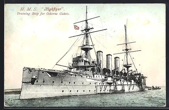 AK Kriegsschiff H. M. S. Highflyer mit Beiboot, Training Ship for Osborne Cadets