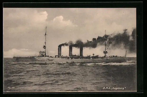 AK Kriegsschiff SMS Augburg in Fahrt