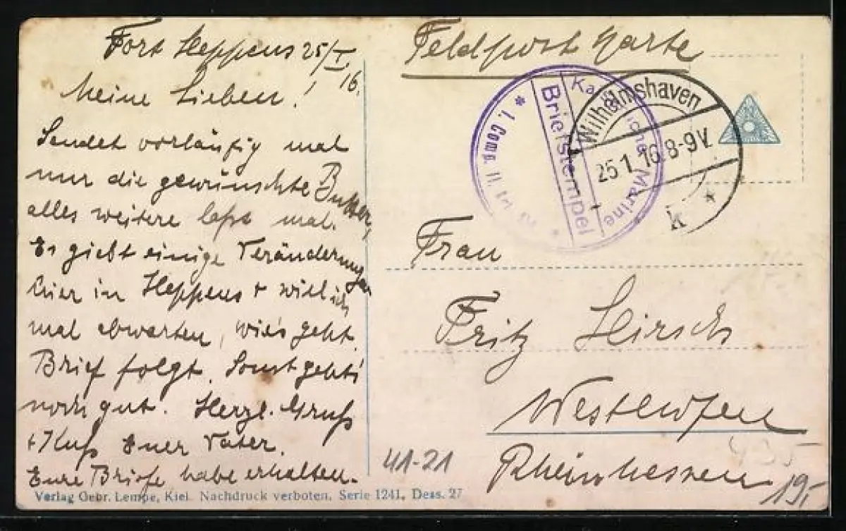gelaufen 1916, guter Zustand