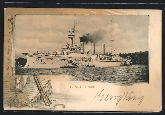 AK Kriegsschiff SMS Hertha des Ostasiengeschwaders ankert vor einer Küste