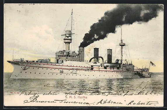 AK Kriegsschiff SMS Hertha des Ostasiengeschwaders heizt die Kessel an