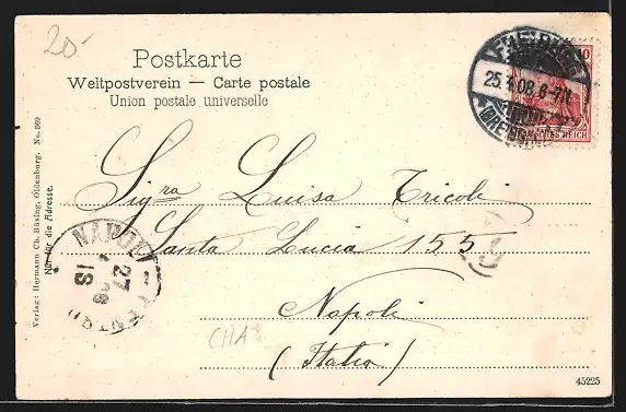 alte Ansichtskarte, gelaufen 1908, guter Zustand