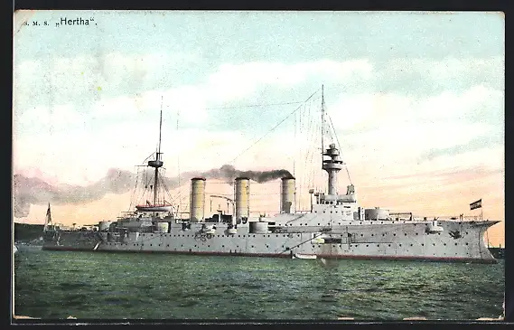 AK Kriegsschiff SMS Hertha des Ostasiengeschwaders liegt vor Anker