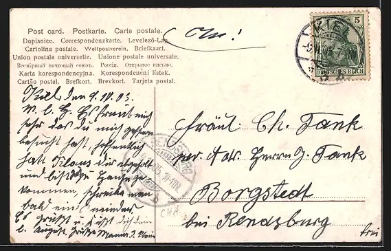 alte Ansichtskarte, gelaufen 1905, Eckknick li. oben, guter Zustand