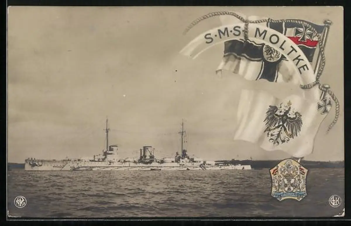 AK Kriegsschiff S.M.S. Moltke, Reichskriegsflagge und Wappen