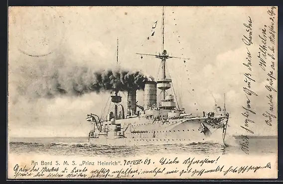 AK Kriegsschiff SMS Prinz Heinrich in voller Fahrt