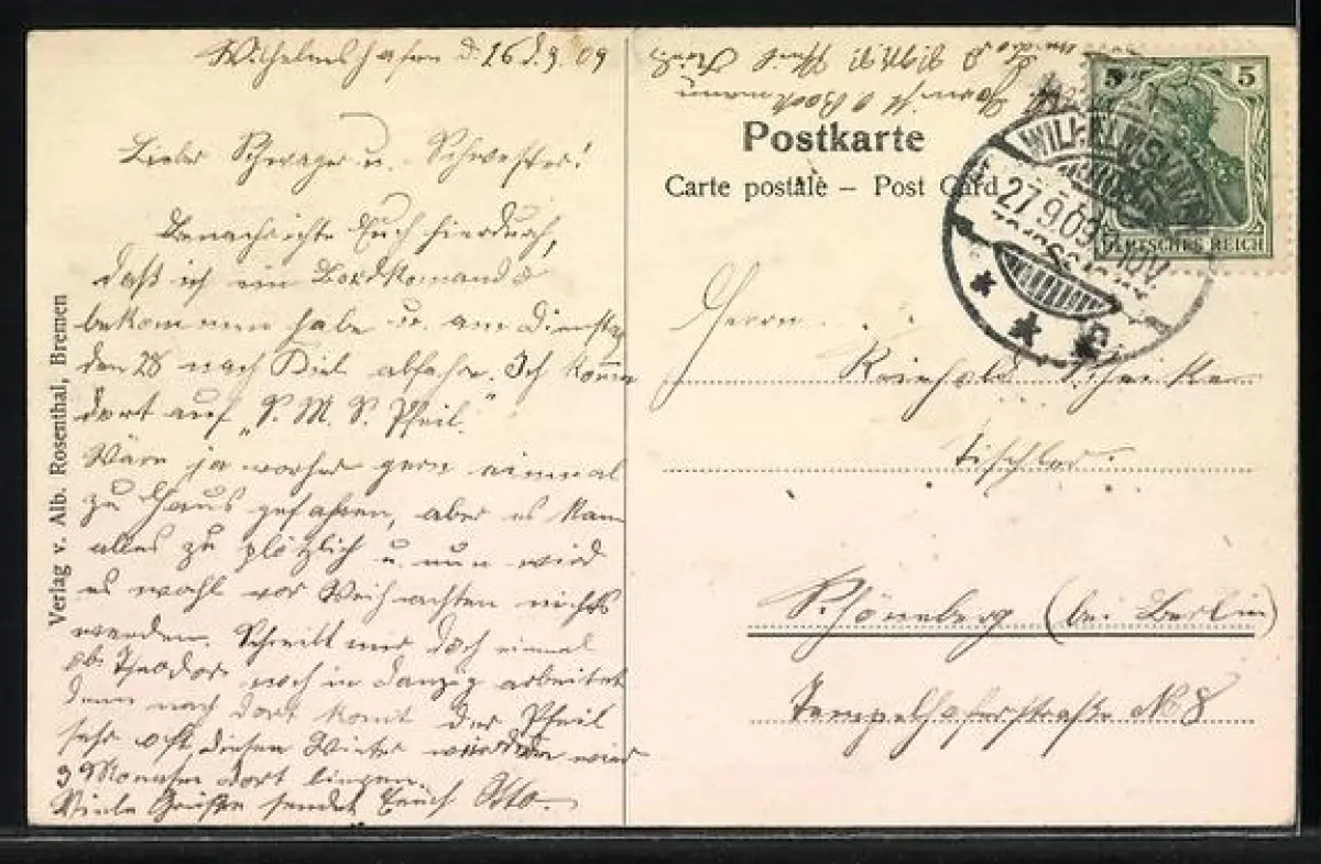 alte Ansichtskarte, gelaufen 1909, guter Zustand