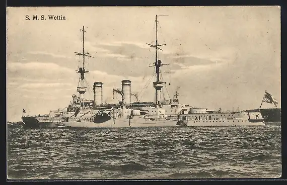 AK Kriegsschiff SMS Wettin der kaiserlichen Marine auf Backbord