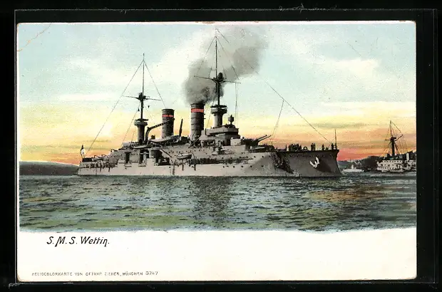 AK Kriegsschiff S.M.S. Wettin in Fahrt