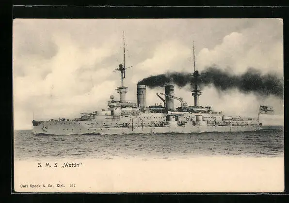 AK Kriegsschiff SMS Wettin in voller Fahrt