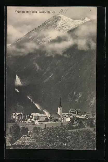 AK Krimml, Ortsansicht mit den Wasserfällen